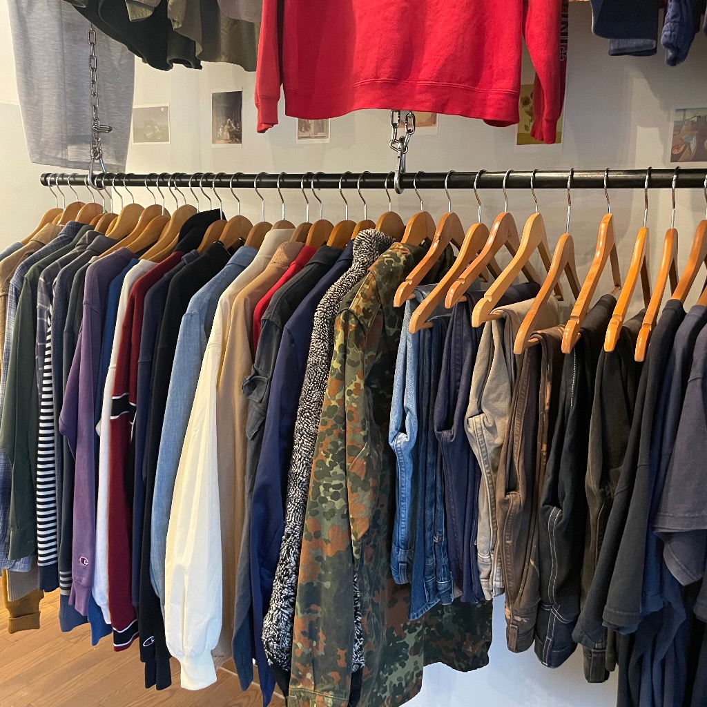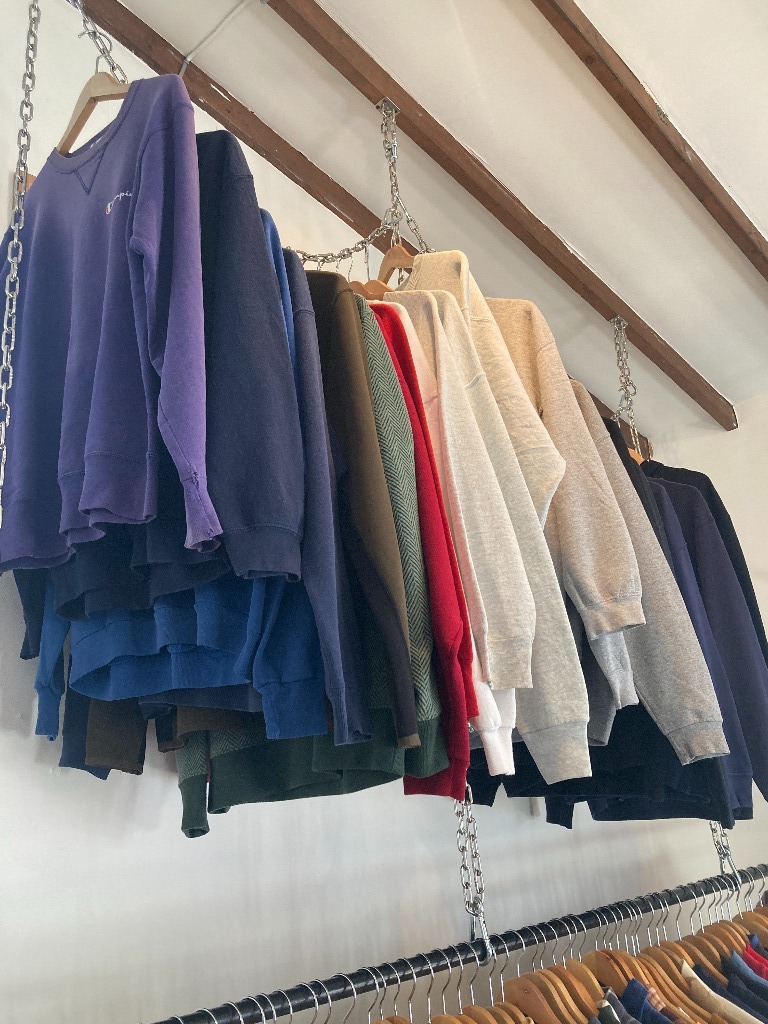 当店はコーディネートがしやすく、着やすい古着を取りそろえることでお客さまになじみやすい古着屋を目指しております。